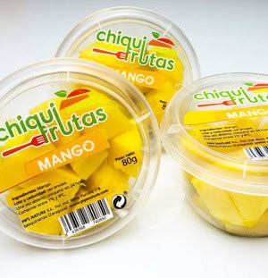 12 vasitos de 80 gramos, variados: 4 mix de fruta, 4 mango y 4 piña a dados